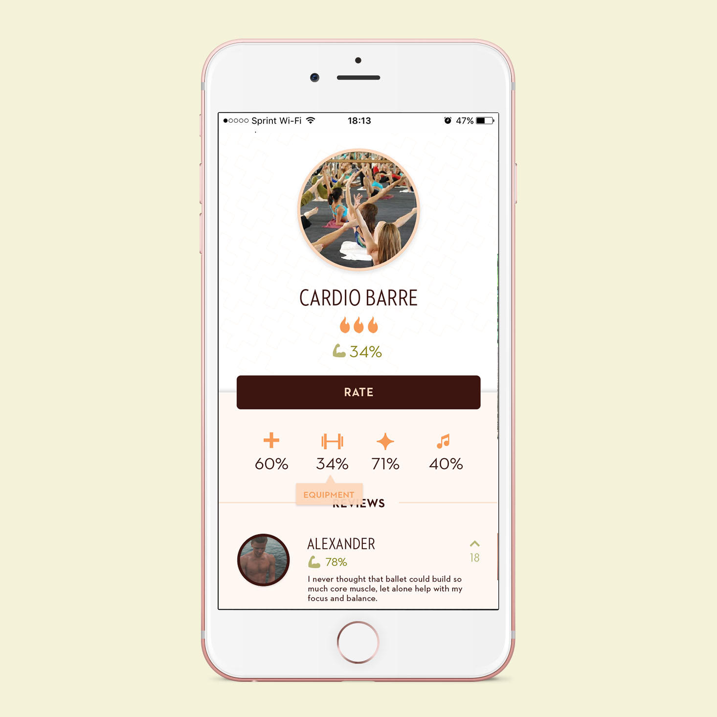 Instagram FeedYelp for gyms and fitness professionals. The creators wanted an app with a simple, clean UI that appealed to a female audience. After many different brand direction considerations and iterations, we decided on this palette and style.