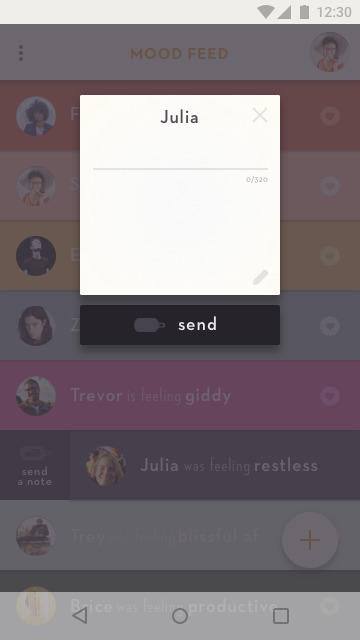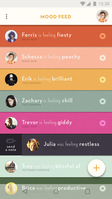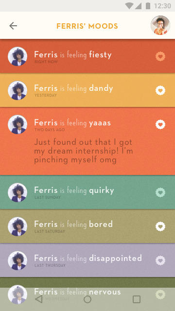 Mood Feed is an app meant to bring intimacy and simplicity back to social media by allowing users to keep a log of their daily emotions and share it with their friends. In this concept project, I explored UI patterns I’d never seen before, and meditated on the ways that technology can sometimes muddy our communication.